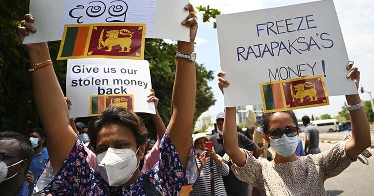 ہنگاموں کی وجہ سے ملک سے فرار ہونے کے بعد، راجاپکسا نے دعویٰ کیا کہ انٹرنیشنل مونیٹری فنڈ (آئی ایم ایف) کی مالی امداد اقتصادی زوال سے نکلنے کا واحد آپشن